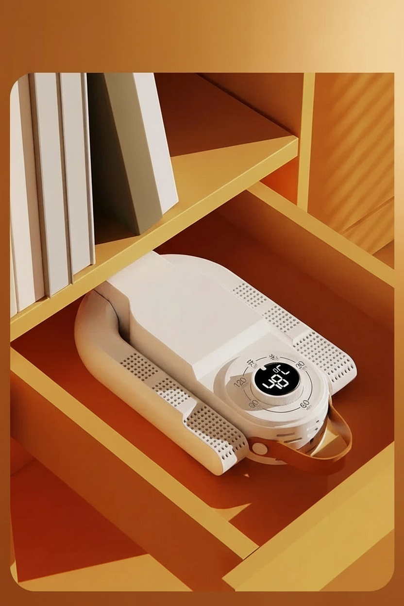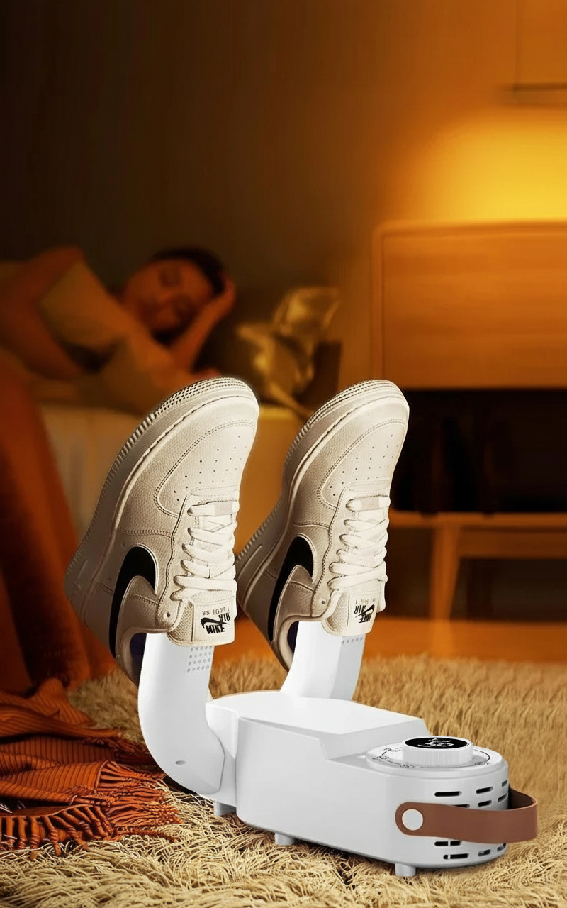 Aucun réglage compliqué : insérez le sèche-chaussures, choisissez la durée, et laissez l’appareil faire le reste. Son design compact permet de l’utiliser dans n’importe quelle pièce, même dans les espaces réduits.